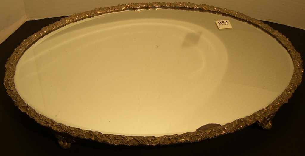 Silver plated frame with bevel oval mirrored insert plateau - 19 1/4" x 13 3/4" Silver plated frame with bevel oval mirrored insert plateau - 19 1/4" x 13 3/4"