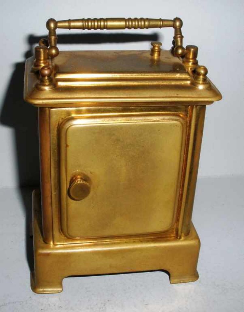 Small Waterbury Brass Frame Repeater Carriage Clock. 2" width x 3" length x 4 1/2" height Small Waterbury Brass Frame Repeater Carriage Clock. 2" width x 3" length x 4 1/2" height