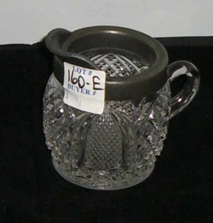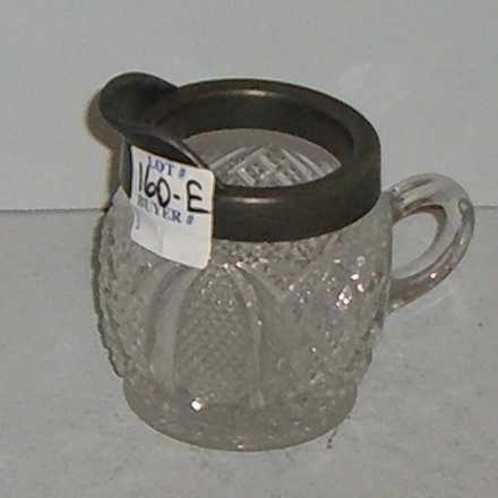 Pressed glass creamer with silver top. 3 1/4" tall Pressed glass creamer with silver top. 3 1/4" tall