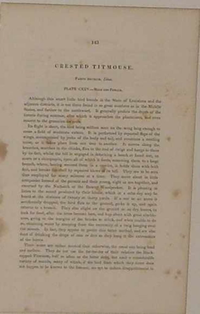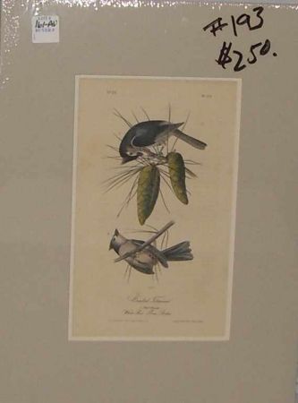 1893 Audubon print Crested Titmouse