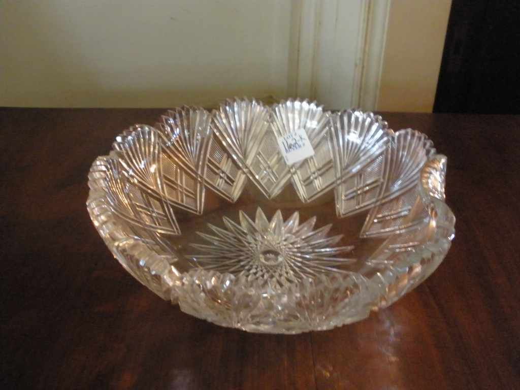 Cut glass bowl, rare rolled handle rim - 10" round by 3" tall Cut glass bowl, rare rolled handle rim - 10" round by 3" tall