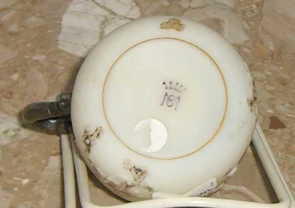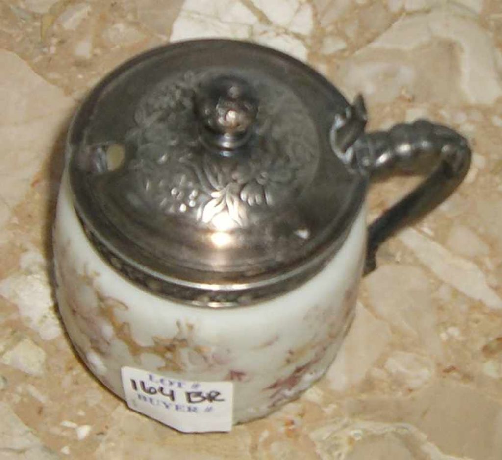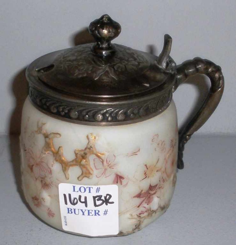 Crown Milano mustard pot w/silver plate fitting - 3" round x 4" tall Crown Milano mustard pot w/silver plate fitting - 3" round x 4" tall