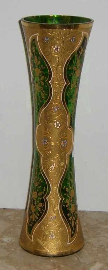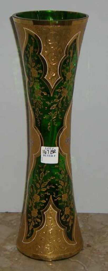 green vase w/hand painted floral and gold applied decoration - 14 1/4" tall green vase w/hand painted floral and gold applied decoration - 14 1/4" tall