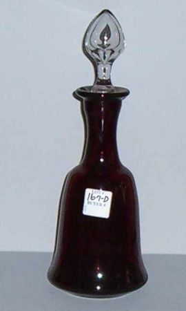 Ruby decanter with clear stopper - 3 1/2" round by 11 1/2" tall Ruby decanter with clear stopper - 3 1/2" round by 11 1/2" tall