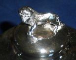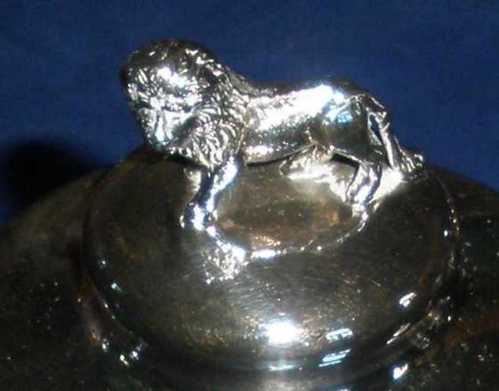 Footed tea pot w/lion finial, bright cut w/women faces around it Footed tea pot w/lion finial, bright cut w/women faces around it
