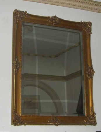 Large gilded gold framed beveled mirror - 48 1/2" tall by 38" wide Large gilded gold framed beveled mirror - 48 1/2" tall by 38" wide