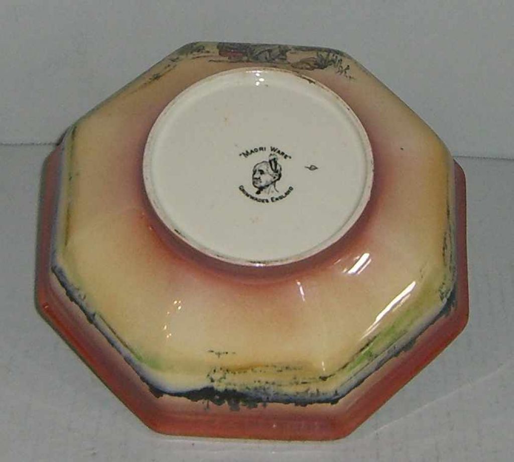 Maori Ware England bowl native decorated 7 3/4" octagonal shaped - Signed by Te Hongi. Maori Ware England bowl native decorated 7 3/4" octagonal shaped - Signed by Te Hongi.