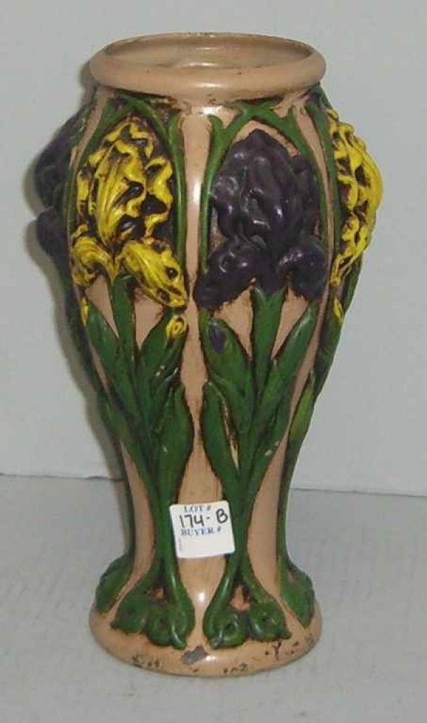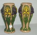 Pair of Goofus Glass Vases w/Hand Painted Iris - 10 1/2" tall Pair of Goofus Glass Vases w/Hand Painted Iris - 10 1/2" tall