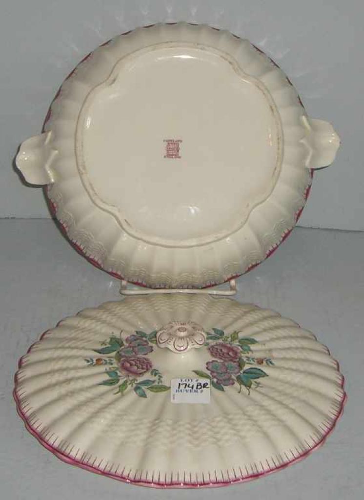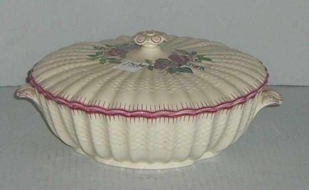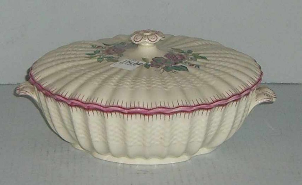 Spode England ribbed covered bowl with basket weave - 18 3/4" round Spode England ribbed covered bowl with basket weave - 18 3/4" round