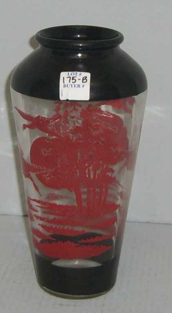 Glass Vase w/Black and Red Enameled Decoration - 9 1/2" tall Glass Vase w/Black and Red Enameled Decoration - 9 1/2" tall