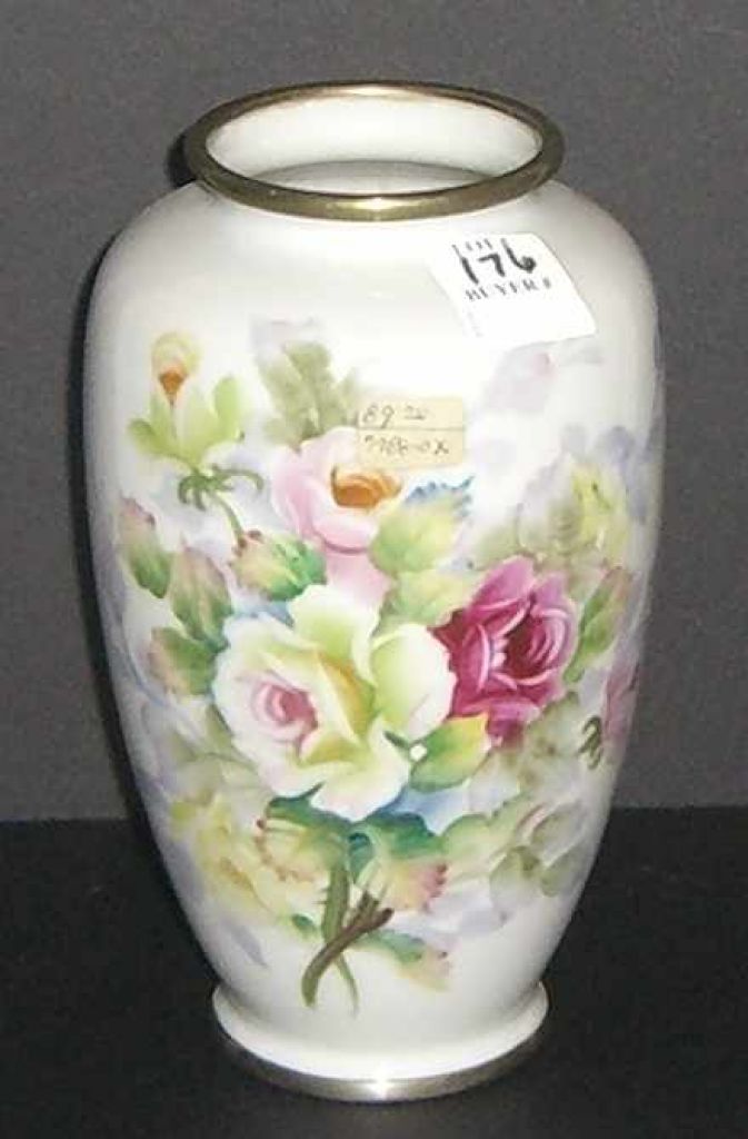 Hand painted Japan vase with flowers & gold trim - 4 inches round & 7 1/2 inches tall Hand painted Japan vase with flowers & gold trim - 4 inches round & 7 1/2 inches tall