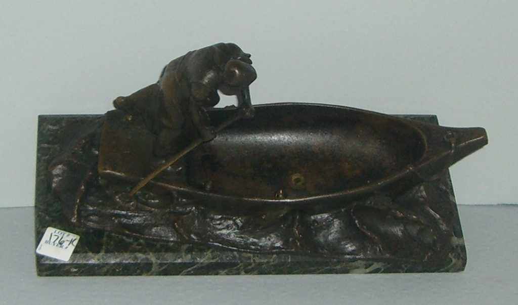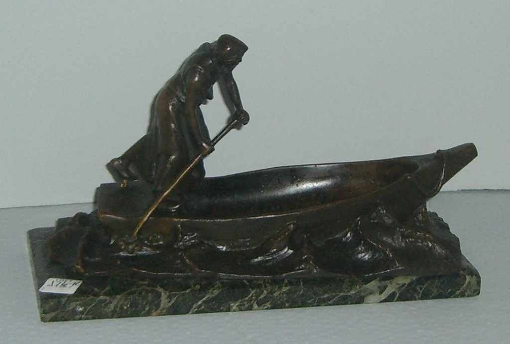 2015 Austrian marble base bronze lady in boat figure