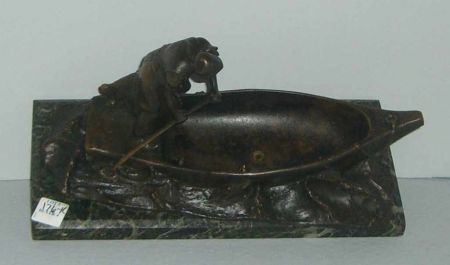 Austrian marble base bronze lady in boat figure - 13" length by 6" width by 8" height Austrian marble base bronze lady in boat figure - 13" length by 6" width by 8" height