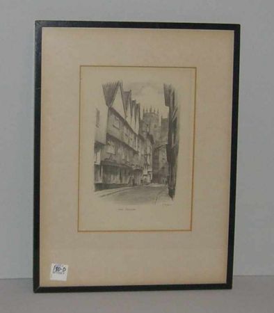 "York Petergate" stenciled picture of buildings. "York Petergate" stenciled picture of buildings.