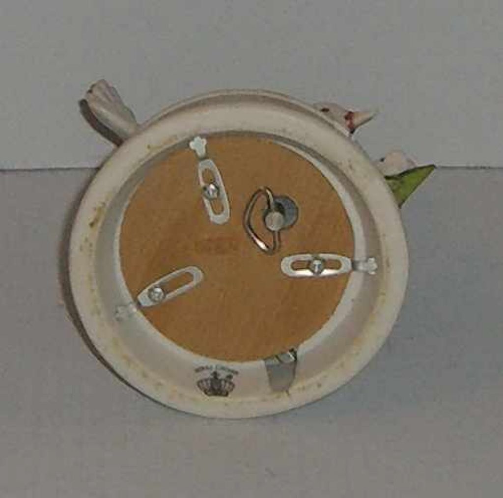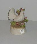 Ceramic Music Box w/White Dove and Foliage Decoration marked royal crown over a crown. 4" round x 6" tall Ceramic Music Box w/White Dove and Foliage Decoration marked royal crown over a crown. 4" round x 6" tall
