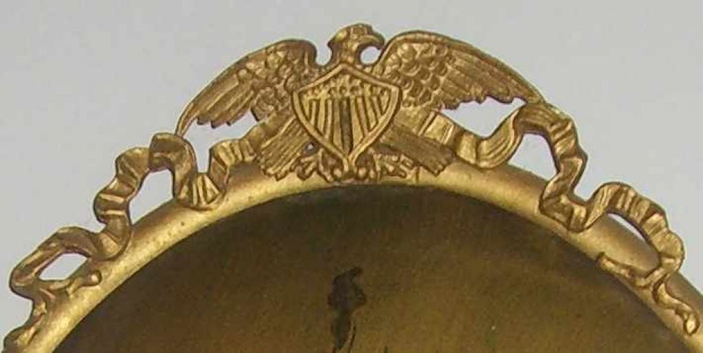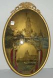 2061 Oval reverse painting of Statue of Liberty in gold frame with eagle top