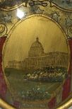 Oval reverse painting of Statue of Liberty in gold frame with eagle top - 14 1/2" width x 21" length Oval reverse painting of Statue of Liberty in gold frame with eagle top - 14 1/2" width x 21" length