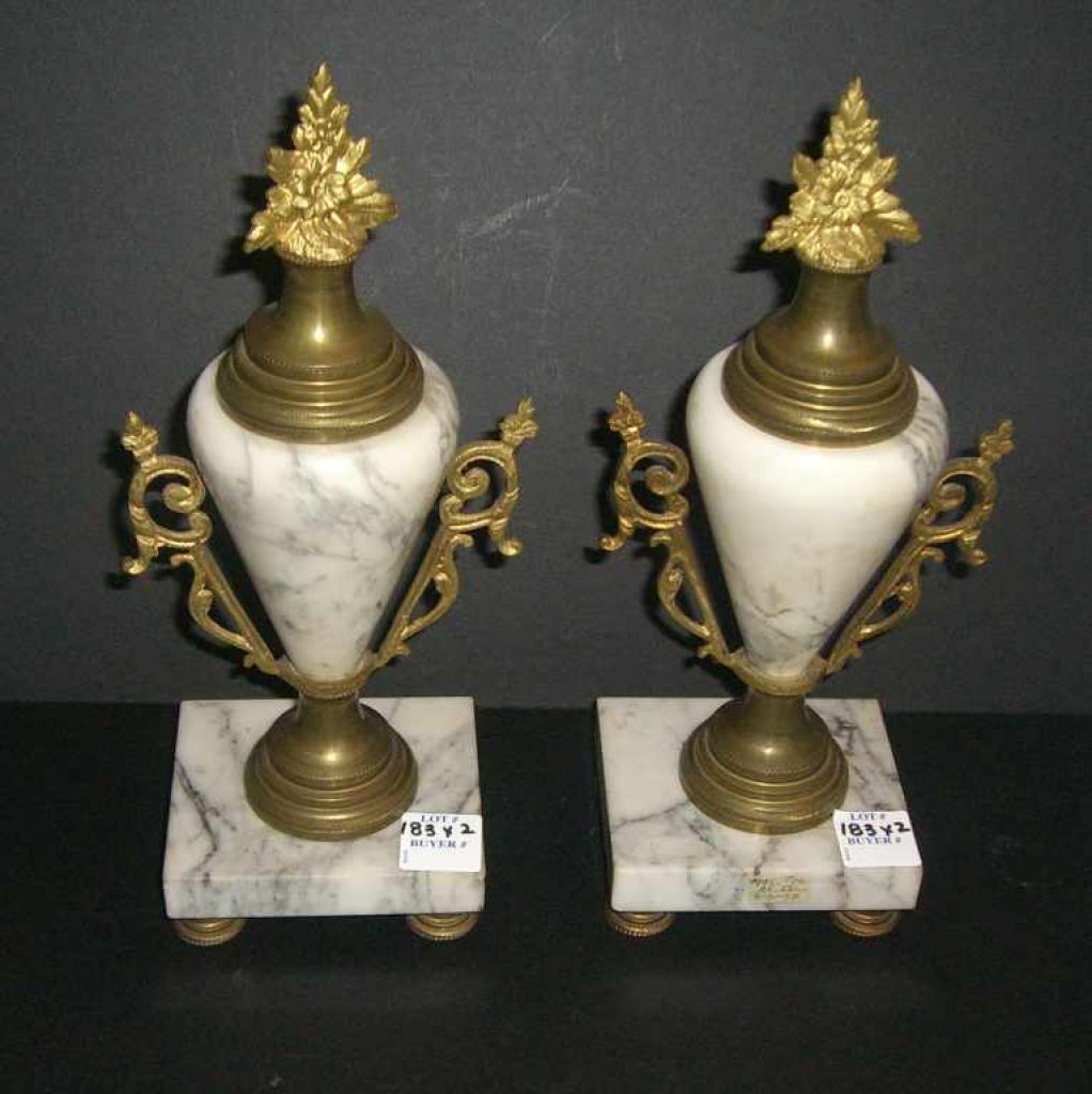 Pair marble & bronze clock urns side - 4" width by 11" tall by 3" deep Pair marble & bronze clock urns side - 4" width by 11" tall by 3" deep