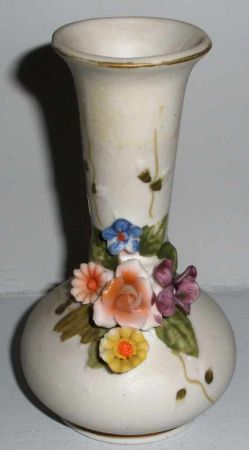 Small flared vase with applied flowers - 2 1/2" round x 4" tall Small flared vase with applied flowers - 2 1/2" round x 4" tall