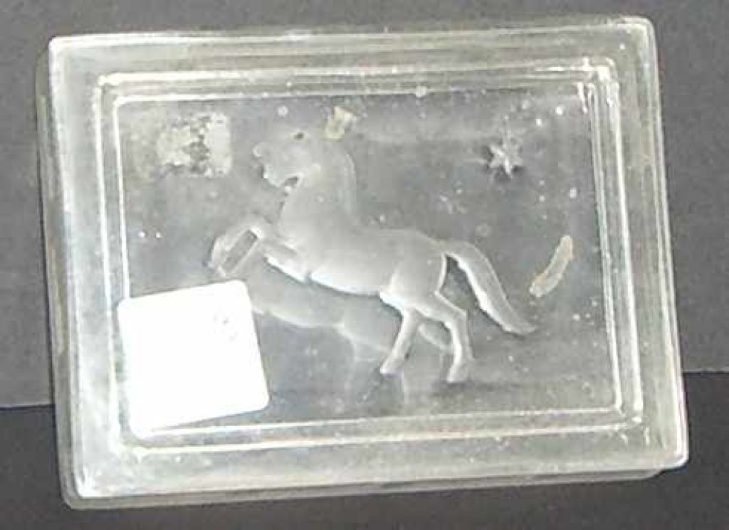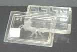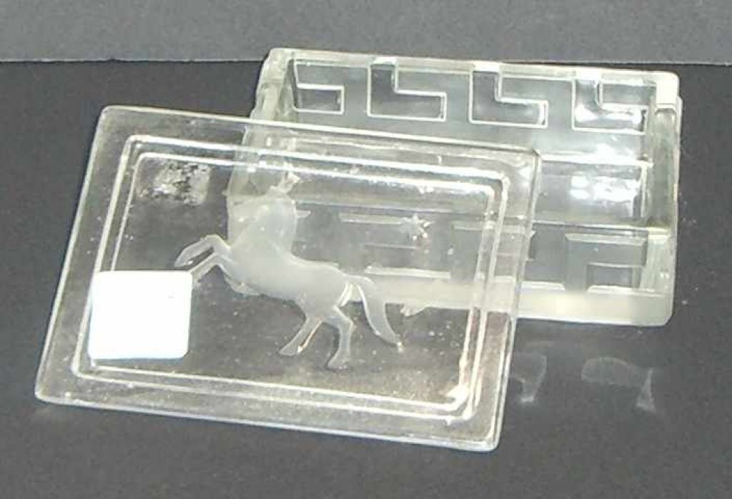 Verlys France Clear Glass Cigarette Box w/Engraved Horse - Signed. 3 1/2" width x 5" length x 1 1/2" deep Verlys France Clear Glass Cigarette Box w/Engraved Horse - Signed. 3 1/2" width x 5" length x 1 1/2" deep