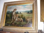 Oil on canvas Leopard painting, ornately framed - 33" wide by 29" high Oil on canvas Leopard painting, ornately framed - 33" wide by 29" high