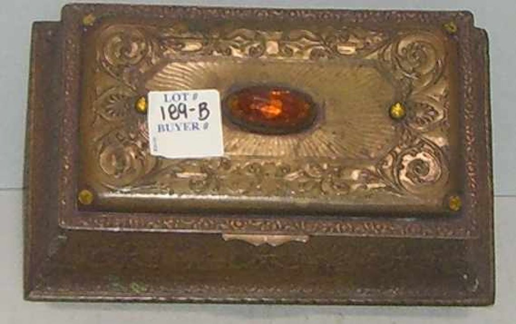 Brass Ornate Embossed, Hinged Top Box w/Jewels - 6 3/4" long x 4 5/8" wide Brass Ornate Embossed, Hinged Top Box w/Jewels - 6 3/4" long x 4 5/8" wide