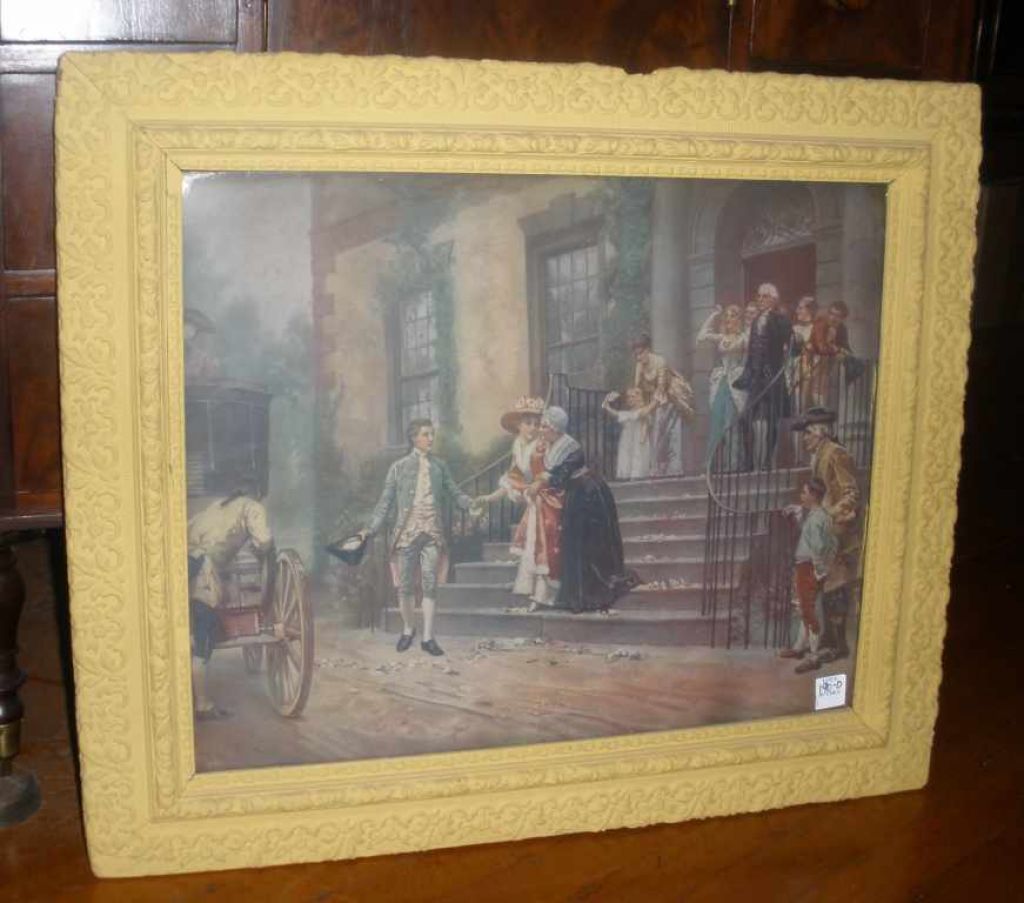 Carved frame picture of Victorian era party on the terrace. Carved frame picture of Victorian era party on the terrace.