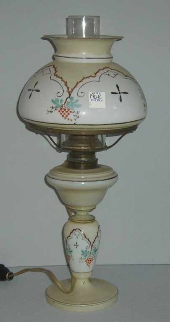 White cased glass enameled oil lamp converted to electric - 18" tall White cased glass enameled oil lamp converted to electric - 18" tall