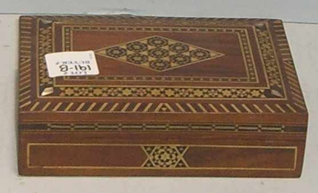 Syrian Hinged Covered Box w/Ornate Mother of Pearl and String Inlay - 6" long x 4 1/4" wide Syrian Hinged Covered Box w/Ornate Mother of Pearl and String Inlay - 6" long x 4 1/4" wide