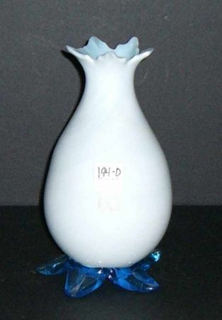 Czech blue swirl vase with dark blue leaf feet - 4 1/2" round by 9" tall Czech blue swirl vase with dark blue leaf feet - 4 1/2" round by 9" tall