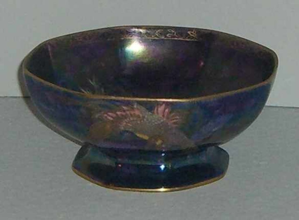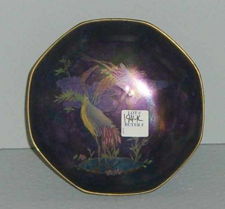 Purple luster oriental style bowl Maling Newcastle on Tyne England with birds - 6 1/2" round by 3" tall Purple luster oriental style bowl Maling Newcastle on Tyne England with birds - 6 1/2" round by 3" tall