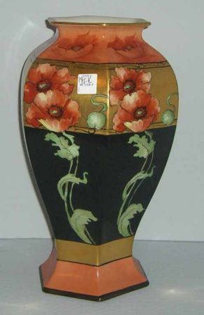 2163 Hand painted France paneled vase with orange, gold, & black colors flowers & leaves