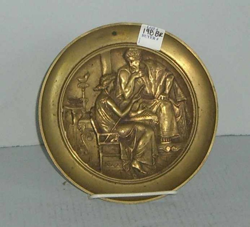 Classical scene Victorian gilded bronze plaque - 7" round Classical scene Victorian gilded bronze plaque - 7" round