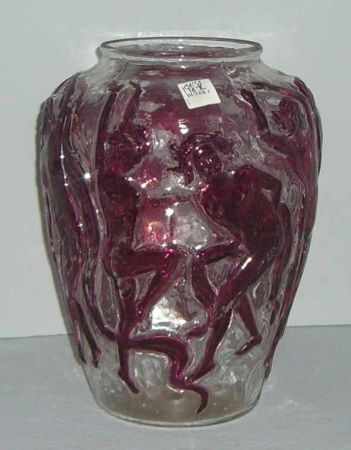 2184 Consolidated clear vase with drilled bottom with nude dancing ladies