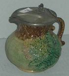 Majolica Basket Weave and Foliage Syrup Pitcher - 4 7/8" tall Majolica Basket Weave and Foliage Syrup Pitcher - 4 7/8" tall