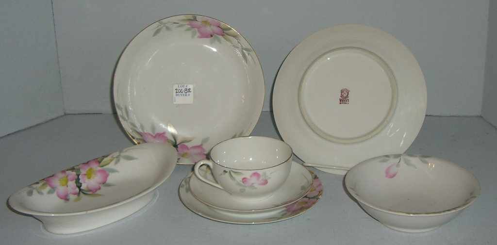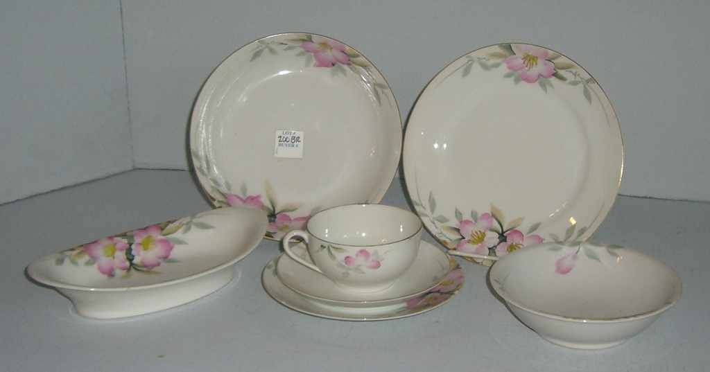 Group of Noritake azalea china - 9 fruit dishes, 3 oatmeal, 12 cups, 17 saucers, 6 cream soup, 12 + 2 salad plates, 9 +1 bread & butter, 2 pickle or relish, Group of Noritake azalea china - 9 fruit dishes, 3 oatmeal, 12 cups, 17 saucers, 6 cream soup, 12 + 2 salad plates, 9 +1 bread & butter, 2 pickle or relish,