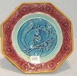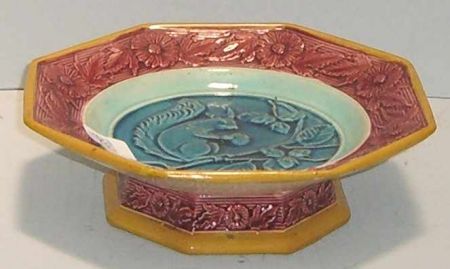 Majolica Embossed Spiral w/Nut Footed Compote. 8" round Majolica Embossed Spiral w/Nut Footed Compote. 8" round