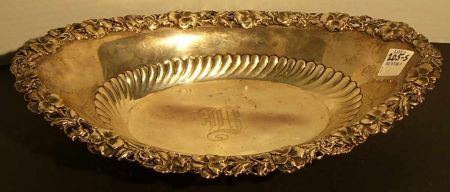 Sterling silver bread basket w/applied floral border monogrammed - 12 3/4" diameter Sterling silver bread basket w/applied floral border monogrammed - 12 3/4" diameter