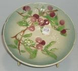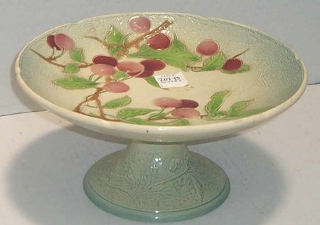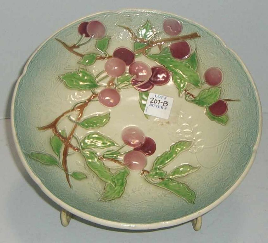 French Footed Majolica Fruit Dish w/Cherries and Foliage - 9 3/4" round French Footed Majolica Fruit Dish w/Cherries and Foliage - 9 3/4" round