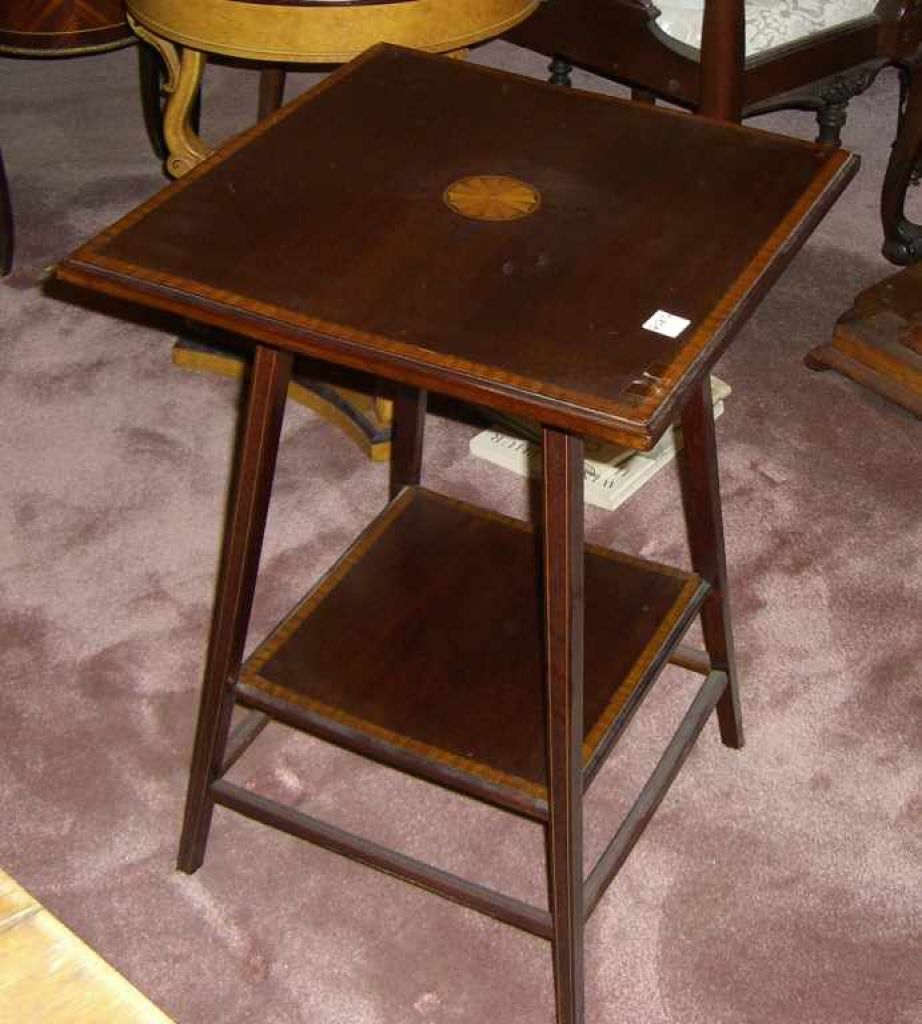 Mahogany square top lamp table with inlay & cross banding - 18 3/4" by 19 1/8" top by 26 3/4" tall Mahogany square top lamp table with inlay & cross banding - 18 3/4" by 19 1/8" top by 26 3/4" tall