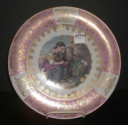 Ornately framed Bavarian hand painted plate - plate pink & gold trim - 10 1/2" round Ornately framed Bavarian hand painted plate - plate pink & gold trim - 10 1/2" round