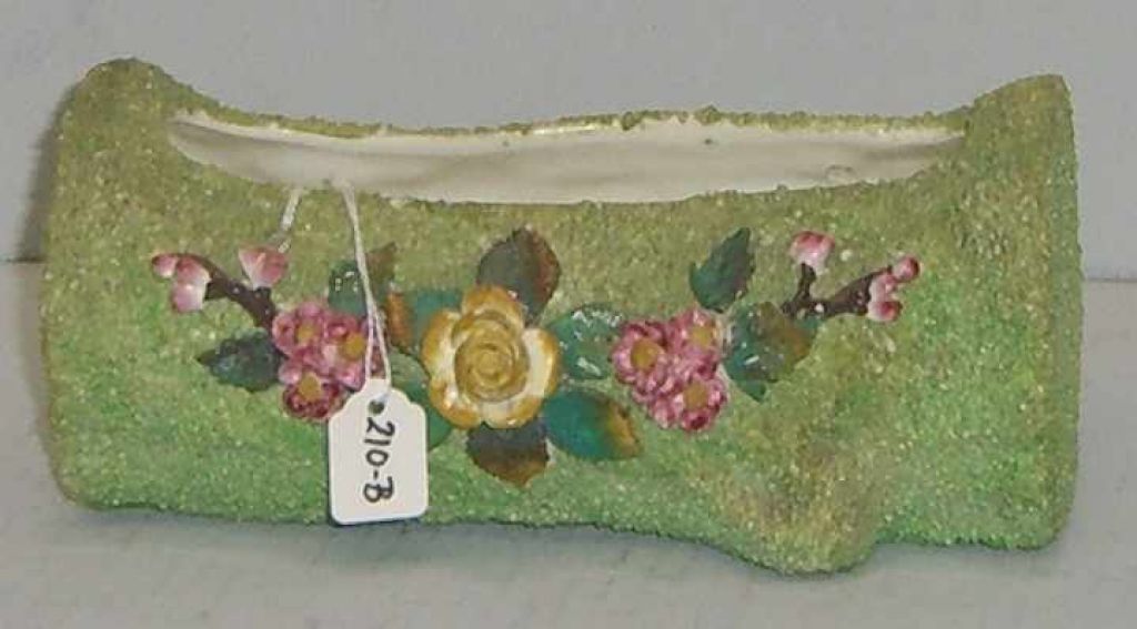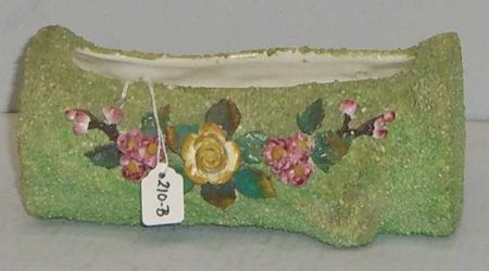 Green Log Planter, Sand Finish Majolica w/Applied Flowers. 5" width x 8" length x 3 1/2" height Green Log Planter, Sand Finish Majolica w/Applied Flowers. 5" width x 8" length x 3 1/2" height