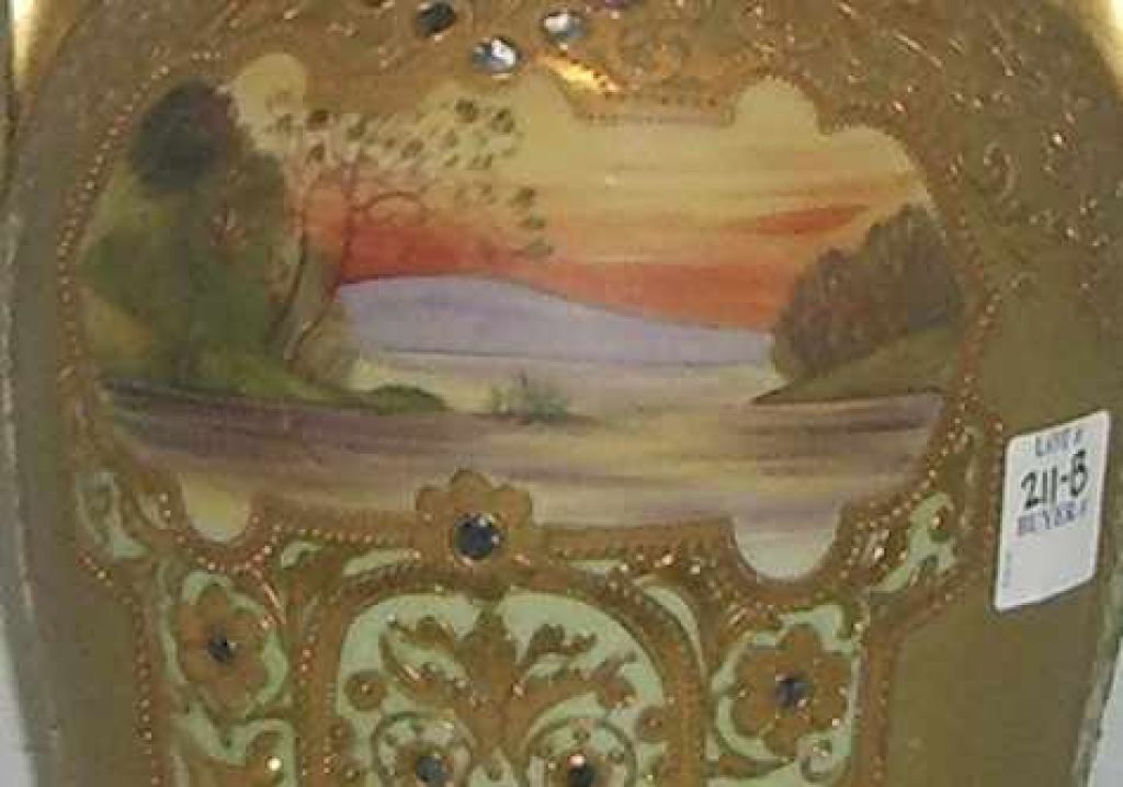 Nippon Double Handled Vase w/Abalone Jewelling - 13" tall Nippon Double Handled Vase w/Abalone Jewelling - 13" tall
