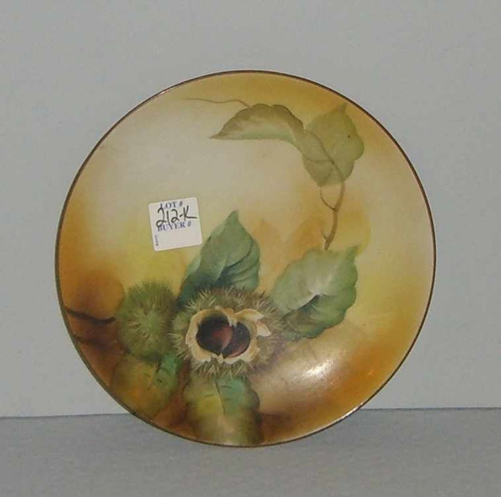 Hand painted Nippon plate with nuts & leaves - 8" round Hand painted Nippon plate with nuts & leaves - 8" round