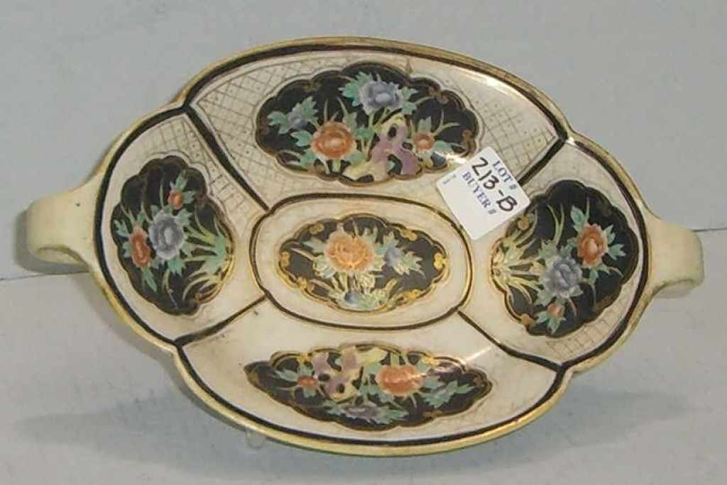 2286 Nippon Oval Double Handle Dish w/Floral Medallions