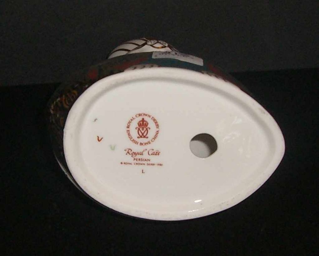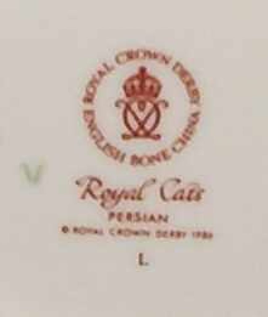 Royal Crown Derby cat - marked Royal Crown Derby Royal Cats Persian 1986 L - 4 1/2" wide by 3 1/2" deep by 6 1/2" tall Royal Crown Derby cat - marked Royal Crown Derby Royal Cats Persian 1986 L - 4 1/2" wide by 3 1/2" deep by 6 1/2" tall