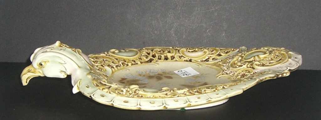 Z Solnay Hungary bird shaped dish open carved - 14" by 10" Z Solnay Hungary bird shaped dish open carved - 14" by 10"