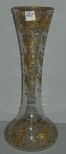 Tall clear vase with red flowers & gold leaves - 6" round by 16" tall Tall clear vase with red flowers & gold leaves - 6" round by 16" tall