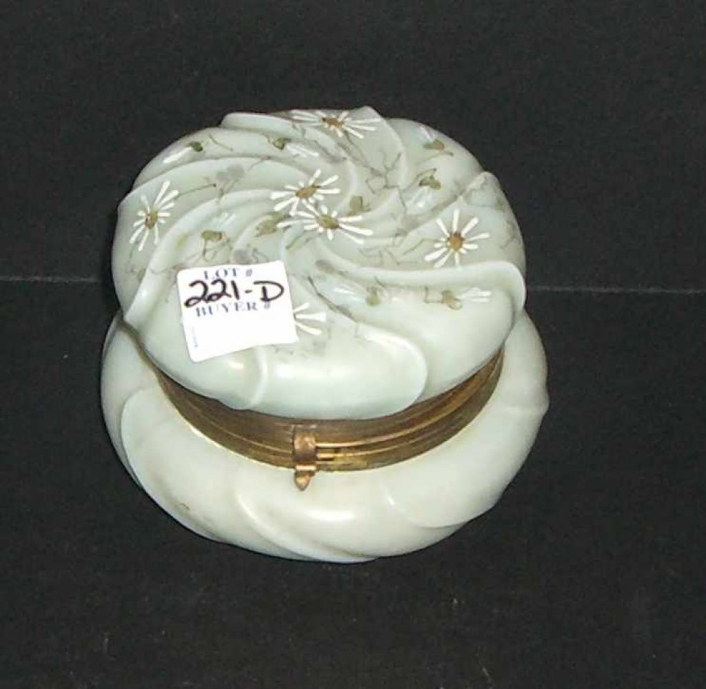 Hinged Wave Crest powder box - 4" round by 3" tall Hinged Wave Crest powder box - 4" round by 3" tall