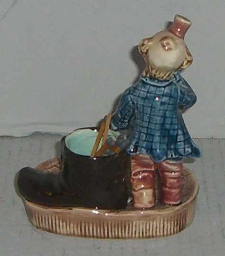 Majolica clown match holder with boot - 4" round by 6" tall Majolica clown match holder with boot - 4" round by 6" tall